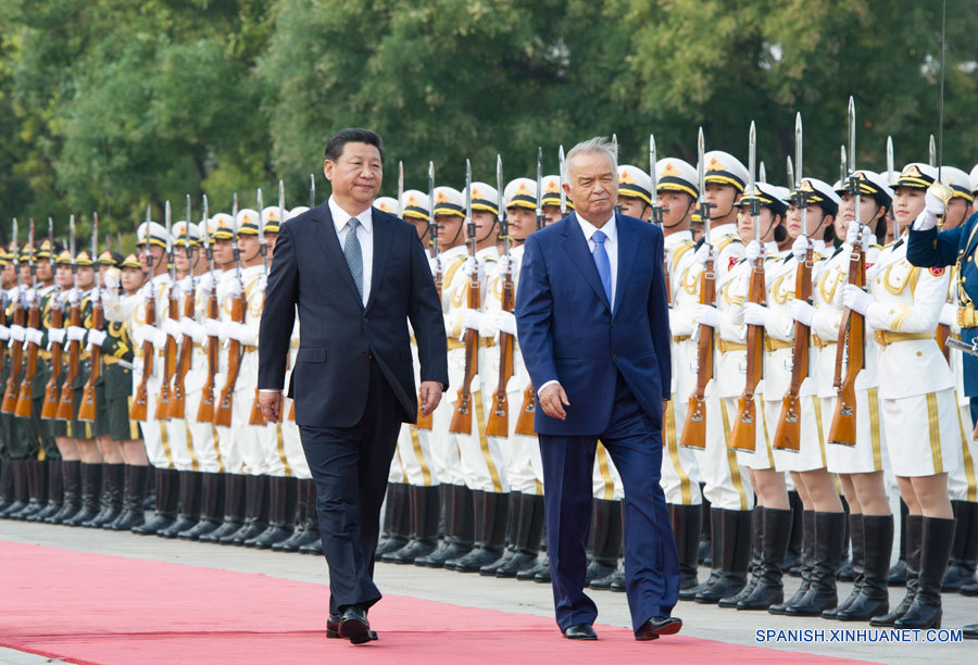 Karimov agradeció las políticas de China de desarrollar la amistad y la cooperación de mutua ganancia con los países de Asia central y prometió apoyar las propuestas chinas sobre el cinturón económico de la Ruta de la Seda y el Banco Asiático de Inversión en Infraestructura.