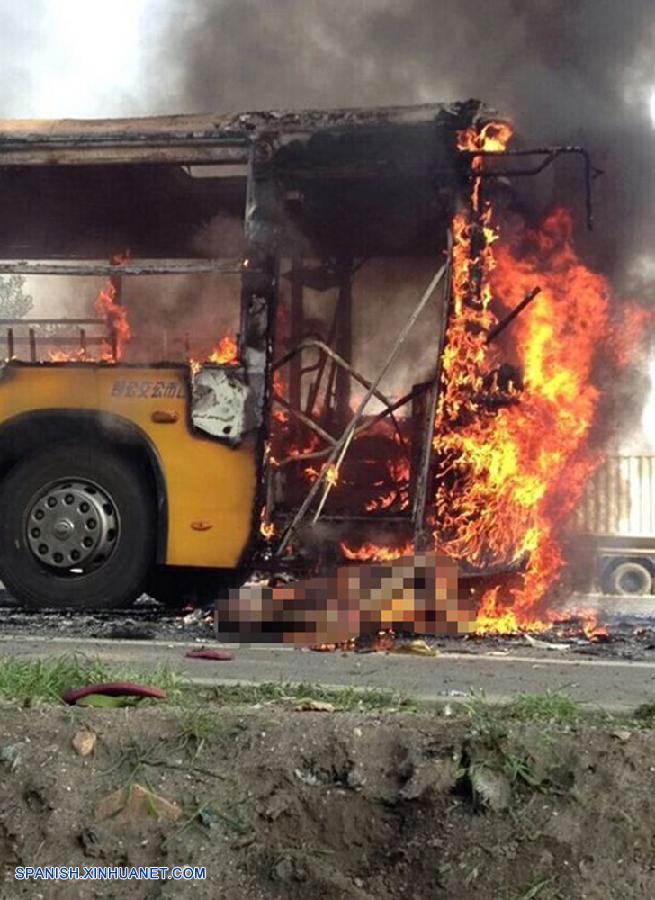 JINAN, 20 ago (Xinhua) --Una persona murió y otras 19 resultaron heridas al incendiarse hoy un autobús público durante la hora pico en la provincia oriental china de Shandong.