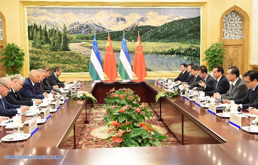 Al elogiar el papel de China en la promoción de la paz mundial y del desarrollo común de ambas partes, Karimov declaró que Uzbekistán desea impulsar la cooperación bilateral en áreas como construcción de infraestructura para el transporte, energía y cultura.
