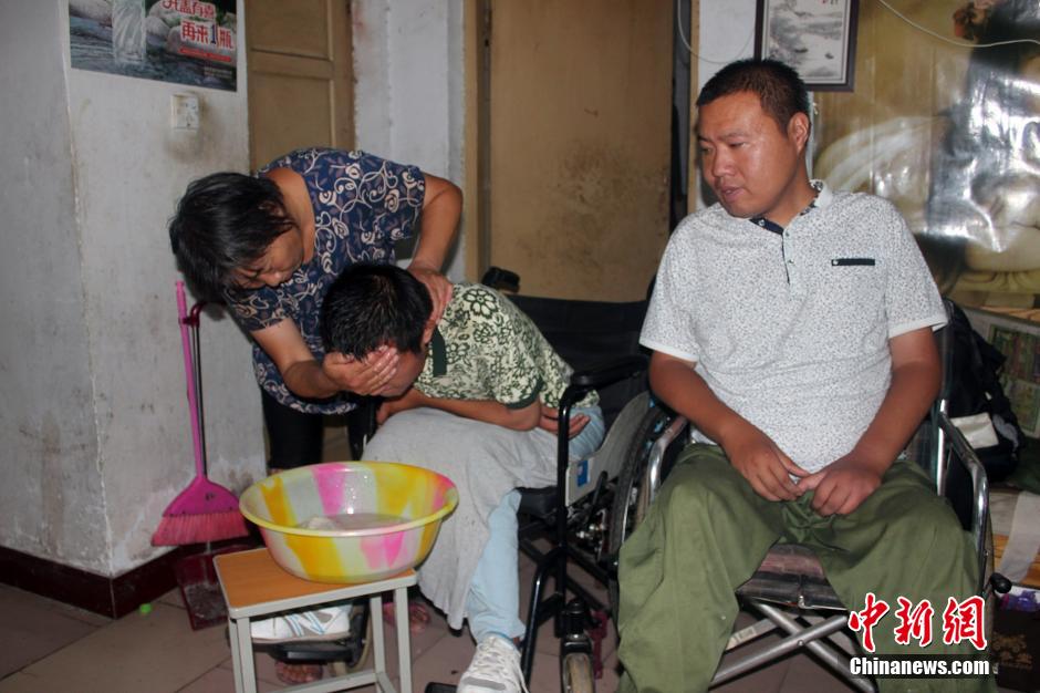 Cada ma?ana, después de levantarse, los hermanos tienen que sentarse en sus camas y esperar a que su madre les ayude a vestirse y asearse. "Esto es la más doloroso para nosotros", se lamenta Zhu Xiaomeng. (Foto: Ma Yiheng)