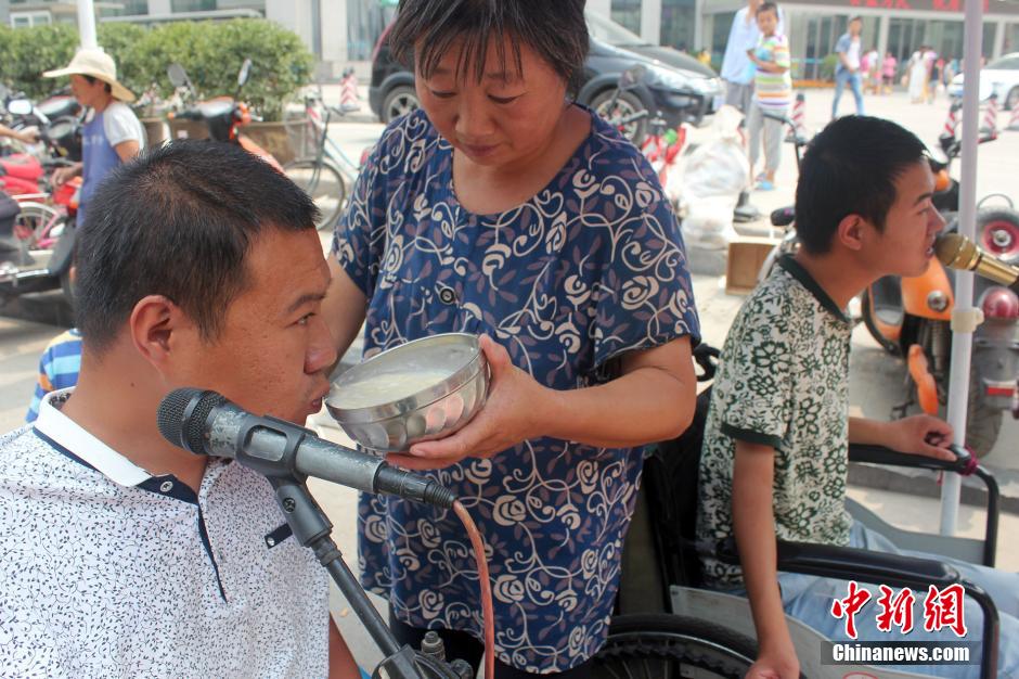 Lu Aimei le da de comer a sus hijos durante la hora de almuerzo. (Foto: Ma Yiheng)