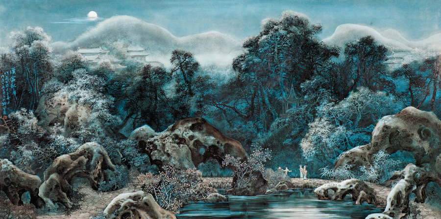 La obra representa el palacio de la dinastía Han (206 aC-220 dC), bajo la hermosa luna de oto?o.