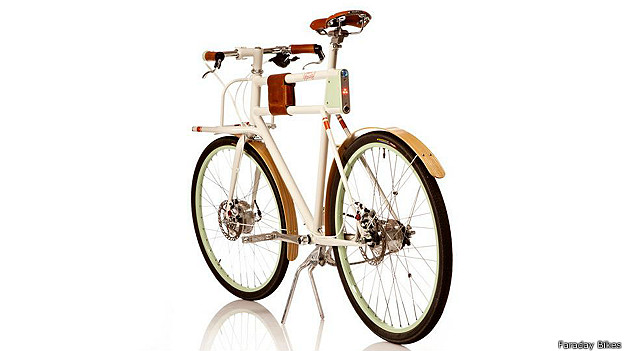 Faraday construye sus bicicletas Porteur con baterías de iones de litio que están empacadas dentro de los tubos del marco, conservando las líneas limpias y colegiales del cuadro.