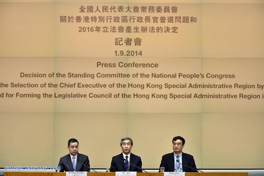 HONG KONG, 1 sep (Xinhua) -- Altos funcionarios chinos explicaron hoy en Hong Kong una decisión legislativa sobre la elección del jefe ejecutivo de Hong Kong por medio del sufragio universal, que ha sido debatida intensamente en la Región Administrativa Especial (RAE).