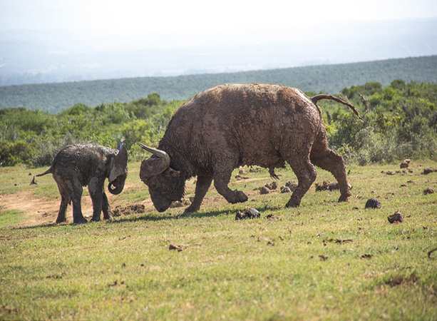 Un elefante bebé pelea con un búfalo (3)