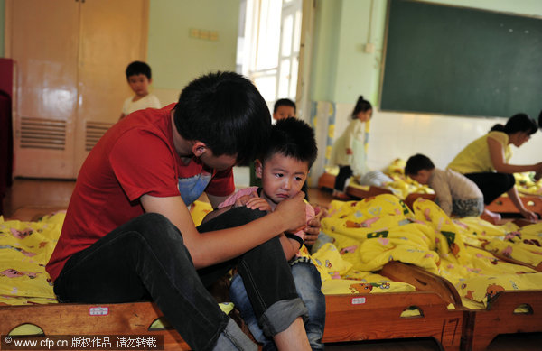 Liang consuela a un ni?o que llora. [Foto: PPC]