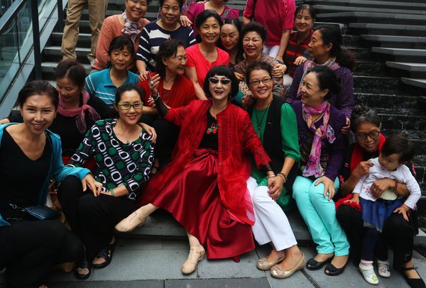 Chen posa con una multitud de más de 100 personas de mediana edad en una plaza en la zona de Sanlitun de Pekín, el lunes. [Foto/CFP]