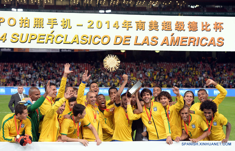 BEIJING, 11 oct (Xinhua) -- Brasil venció hoy por 2-0 a Argentina y conquistó su tercer título consecutivo del "Superclásico de las Américas" en partido disputado en el estadio "Nido del Pájaro", de la capital china.