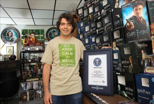 México,13/10/2014(El Pueblo en Línea)-Un sombrero seleccionador, bufandas y estandartes de las cuatro casas de Hogwarts, gafas, peluches, almohadas... y así hasta 3.097 elementos que han permitido al mexicano Menahem Asher Silva Vargas conseguir el récord Guinness a la mayor colección de objetos sobre Harry Potter.