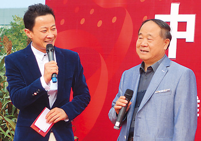 Durante la Fiesta de la Cultura del Sorgo Rojo, se celebró el 20 aniversario del establecimiento de la ciudad Gaomi. Llegaron muchas personalidades oriundas de Gaomi, incluyendo militares, empresarios exitosos, funcionarios de alto nivel y artistas. Entre los presentes, Mo Yan fue uno de los hijos más destacados.