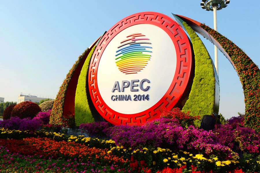 Adornos florales para dar la bienvenida a la reunión del APEC en el distrito Huairou de Pekín, el 14 de octubre de 2014.