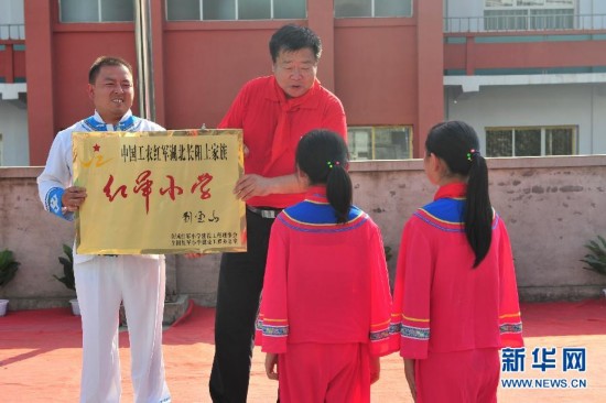 26 de octubre, Fang Qiang, el secretario general del Consejo Nacional de Ingeniería de Construcción de Escuelas Primarias del Ejército Rojo otorga la licencia escolar para la escuela. (Fotos: Liu Changlong, Agencia de Xinhua)