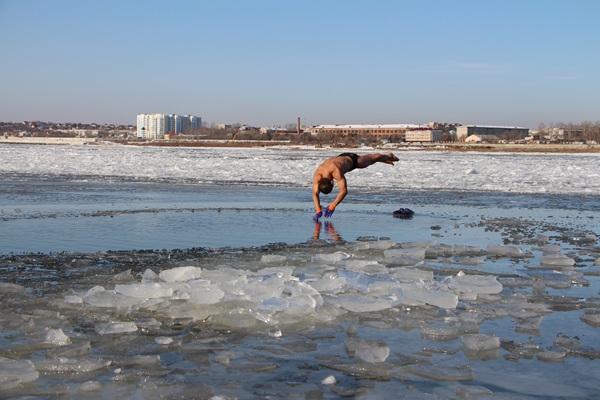 Nadadores continúan con su rutina pese al hielo de Heihe