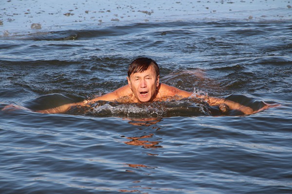 Nadadores continúan con su rutina pese al hielo de Heihe |
