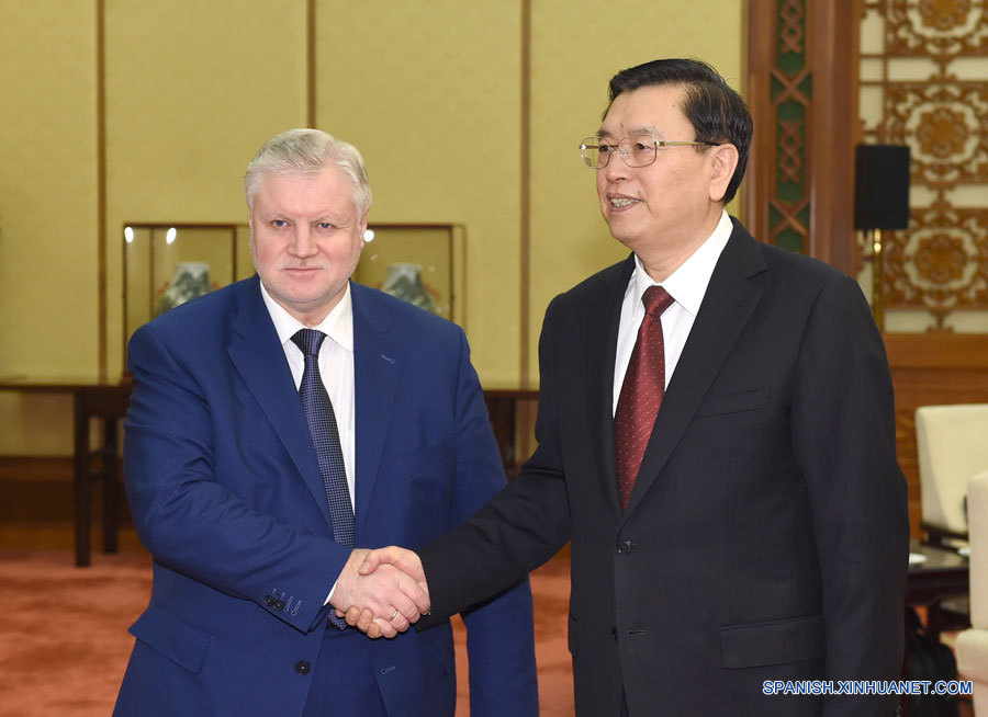 BEIJING, 30 oct (Xinhua) -- El máximo legislador de China, Zhang Dejiang, se reunió hoy con el presidente del partido ruso Una Rusia Justa, Sergei Mironov, en Beijing, a quien prometió estrechar las relaciones entre los partidos y los intercambios parlamentarios con Rusia.