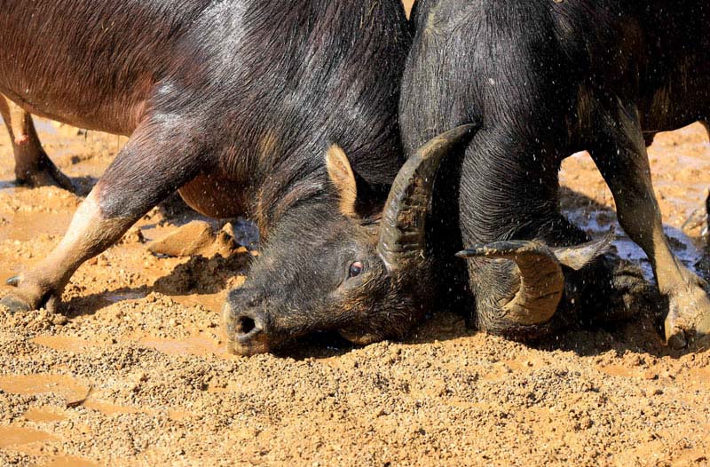 El evento taurino, en una aldea en Liuzhou de la Región Autónoma Zhuang de Guangxi, se llevó a cabo para celebrar una cosecha abundante. [Foto por Tan Kaixing / Asianewsphoto]