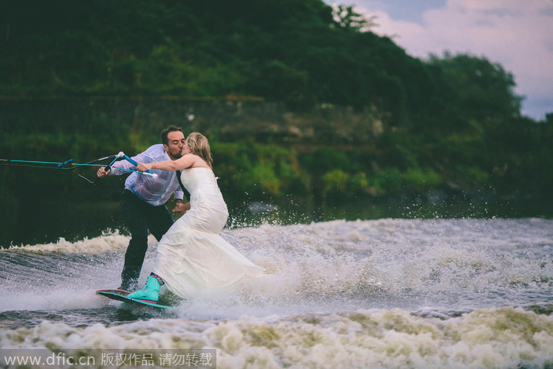 La pareja se besa mientras surfean a gran velocidad a lo largo del río. [Foto/IC]