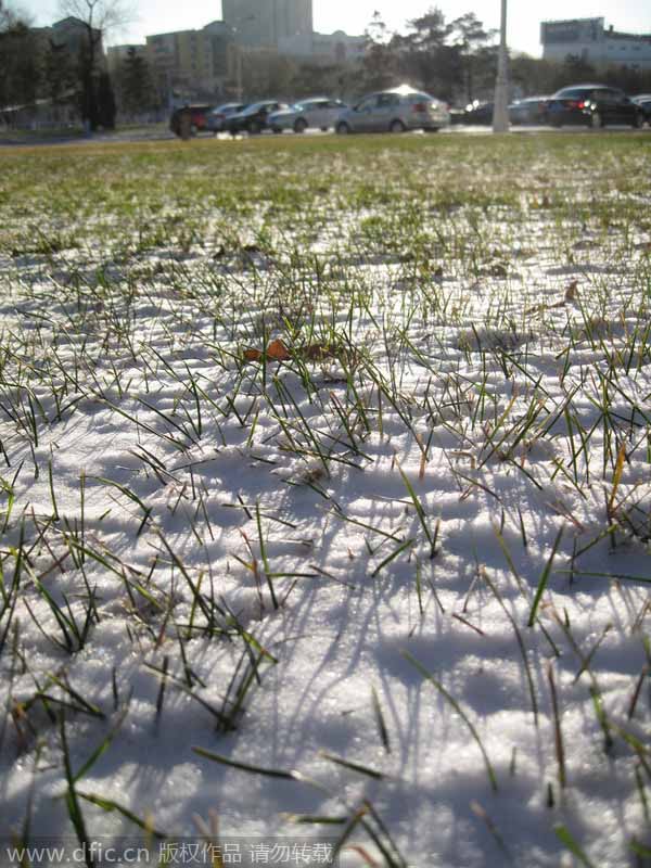 Plantas cubiertas de nieve en Harbin, provincia de Heilongjiang, el 12 de noviembre de 2014. La ciudad recibió una gran nevada con la que bajaron las temperaturas. [Foto/IC]