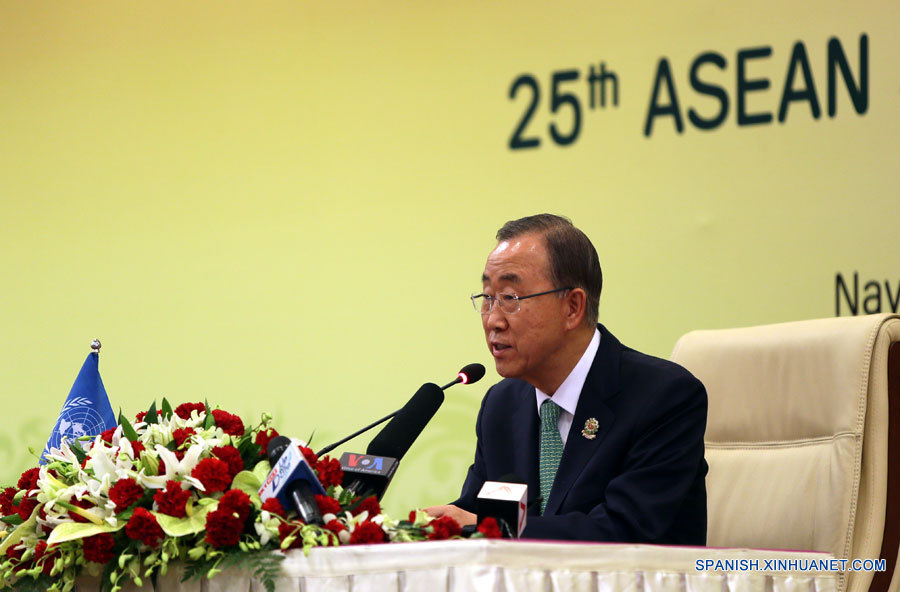 NAYPYITAW, 12 nov (Xinhua) -- El secretario general de la Organización de las Naciones Unidas (ONU), Ban Ki- Moon, elogió hoy las promesas hechas por China y Estados Unidos para limitar las emisiones de gases productores del efecto invernadero e hizo un llamado al resto del mundo para que siga el ejemplo, en declaraciones al margen de la cumbre de la Asociación de Naciones del Sudeste Asiático (Asean).