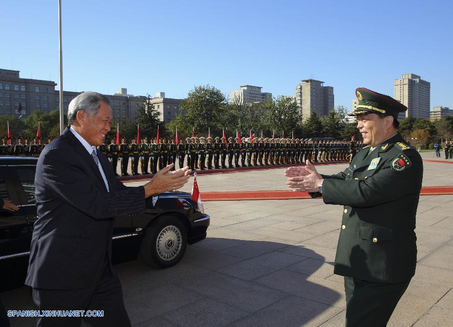 BEIJING, 14 nov (Xinhua) -- El ministro de Defensa Nacional de China, Chang Wanquan, y su homólogo de Singapur, Ng Eng Hen, mantuvieron conversaciones hoy viernes en Beijing y llegaron a un consenso de cuatro puntos.