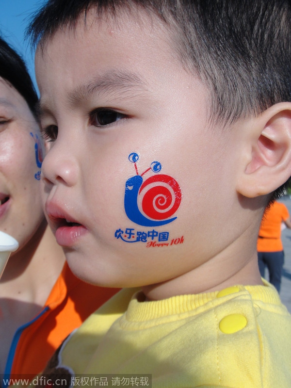 Un ni?o feliz y listo para recorrer los 10 kilómetros. [Foto: IC]