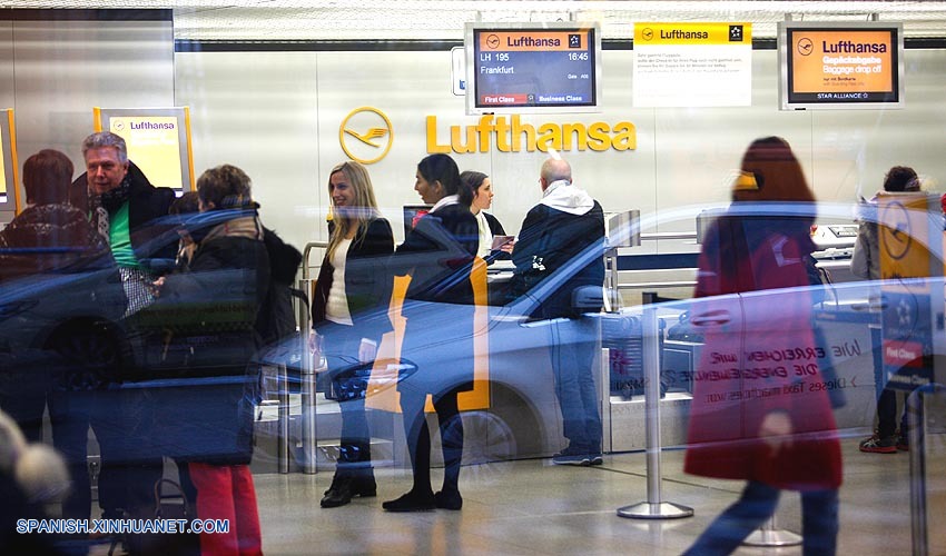 BERLIN, 1 dic (Xinhua) -- La aerolínea alemana Lufthansa anunció hoy que canceló casi la mitad de sus vuelos programados para el lunes y martes debido a una huelga de sus pilotos.