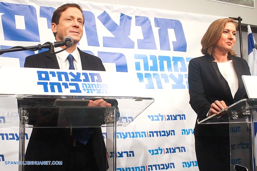 Una encuesta publicada el lunes por el Canal del Knesset, el Parlamento de Israel, realizada antes del anuncio de la lista conjunta, mostró que una unión entre Herzog y Livni podría ganar hasta 23 de los 120 esca?os del próximo Parlamento, en comparación con 21 esca?os del partido Likud de Netanyahu.