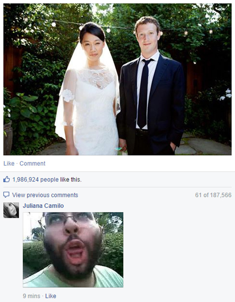 Entre las publicaciones más comentadas está la del anuncio de la boda de Zuckerberg con Priscilla Chan en mayo de 2012. La segunda publicación que llamó más atención es la de enero de 2011 en la que anunciaba que se había hecho vegetariano.