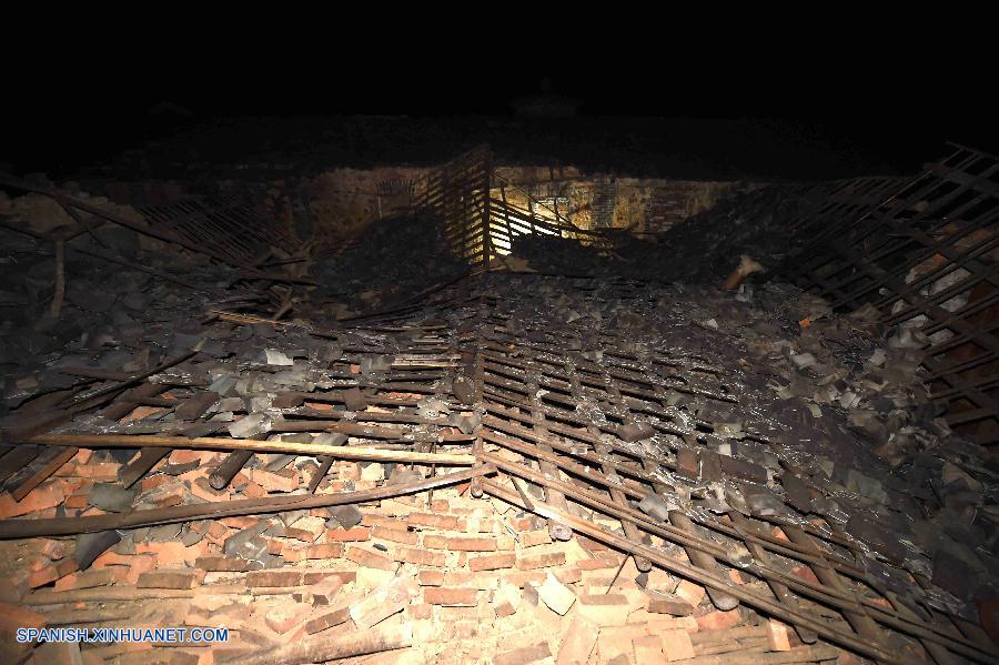 El muro de una vivienda de la aldea de Jiulong, en la ciudad de Qinzhou, se vino abajo en torno a las 17:00 horas y sepultó a cuatro ni?os que volvían a casa tras salir de la escuela.