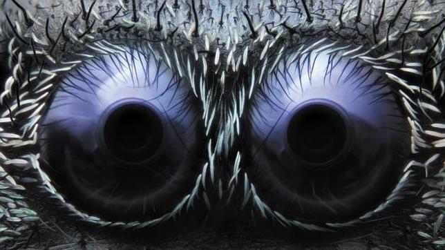 Parecen los ojos de un monstruo de dibujos animados, pero son reales. Pertenecen a una ara?a saltadora Phidippus. El autor, Noah Fram-Schwartz, de Greenwich, Connecticut (EE.UU.), ganó el tercer premio en un concurso de fotografía organizado por Nikon sobre el mundo diminuto que nos rodea. Extraordinario.