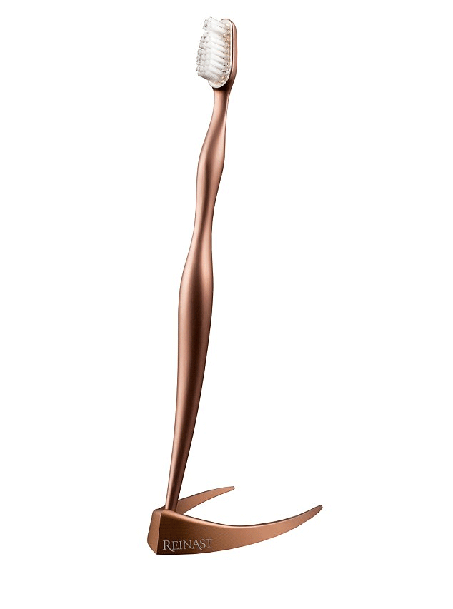 Cepillos de dientes de titanio: la empresa alemana de artículos de lujo Reinast introduce un nuevo producto: Cepillos de dientes de titanio. Tiene cuatro colores. Puedes comprar uno diferente para cada uno de tus familiares sin que se confundan. El cabezal del cepillo es desmontable y cada 6 meses puedes conseguir 5 nuevos cabezales gratis.