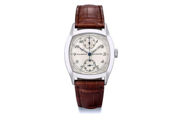 El Patek Philippe 1928 Single Button Chronograph está hecho con oro blanco de 18 quiilates. La esfera es de plata mate. Fue fabricado durante la crisis financiera de 1928.