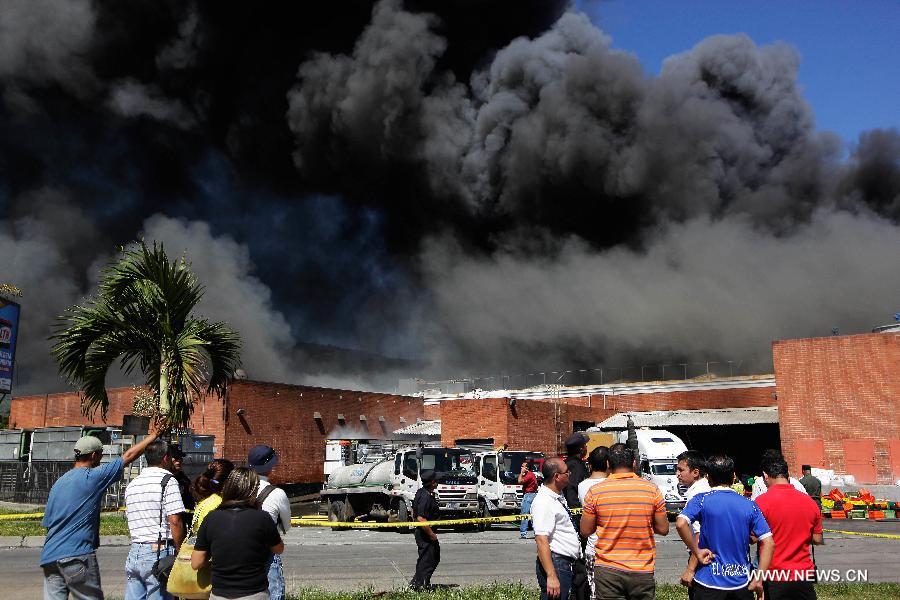 Personas se reúnen fuera del centro comercial de Las Cascadas, en la ciudad de Cuscatlán, a 12 kilómetros de San Salvador, capital de El Salvador. Según información proporcionadapor los trabajadores de rescate, más de 600 empleados fueron evacuados del centro comercial y finalmente el fuego fue controlado.