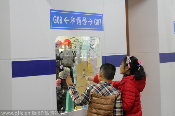 Dos ni?os observan la ropa de una tienda desde la ventana del “vagón”. [Foto/IC]