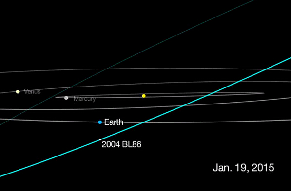 En el momento de su máximo acercamiento el 26 de enero, el asteroide estará a aproximadamente 1,2 millones de kilómetros de la Tierra. "El lunes 26 de enero se producirá el mayor acercamiento del asteroide 2004 BL86 durante al menos los próximos 200 a?os", dijo Don Yeomans, director del Programa de Objetos Cercanos a la Tierra de la NASA, en el Laboratorio de Propulsión a Chorro en Pasadena.