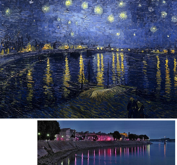 Arriba: "Estrellada noche sobre el Ródano", de Vincent Van Gogh, retrata la escena nocturna en el quinto río más grande de Francia. (Foto: sitio Pintura al óleo)