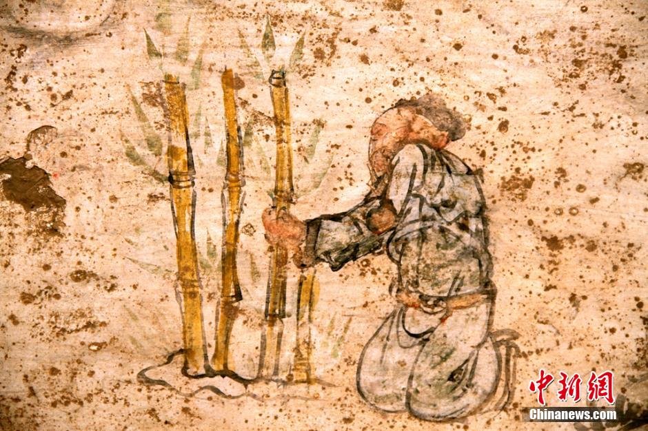 En una tumba de la dinastía Yuan recientemente excavada se han encontrado unos hermosos murales. El hallazgo ocurrió en Luogetai, municipio Hengshan, en Shaanxi. [Foto: Xinhua]