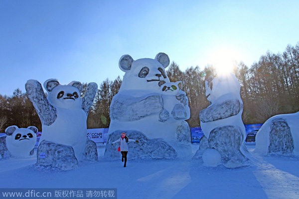 Una chica junto a los pandas de hielo en un parque en Changchun, capital de Jilin. (Foto: IC)