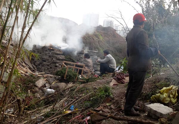 A muchos residentes del centro de Chengdu les desagrada el humo que produce la quema de hierba seca para cocinar el bacón pero no se quejan a las autoridades porque comprenden que se trata de una tradición muy importante para muchas personas de Sichuan durante el a?o nuevo chino.