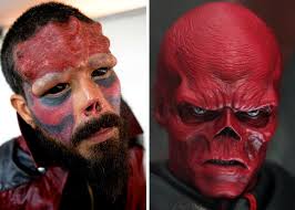 Caracas,06/02/2015(El Pueblo en Línea)-Su nombre es Henry Damon, está casado y tiene un hijo aunque todo el mundo le conoce como Red Skull. Este venezolano de 37 a?os es un gran fan del icónico cómic de Marvel Capitan América. Desde que era un ni?o y su sue?o siempre fue ser el villano de la saga pero desde un punto de vista demasiado real. Su fanatismo es tan exacerbado que le ha llevado a poner su vida en riesgo con varias operaciones quirúrgicas en su cara para asemejarse al malo de la saga, según recoge la prensa venezolana. Primero fueron implantes subdérmicos en la frente y en las cejas, después se hizo tatuar los globos oculares de color negro e incluso se operó para cortarse media nariz de cuajo, una de las se?as distintivas de Red Skull junto al color de su piel, que simuló con decenas de tatuajes en rojo y negro por toda la cara.