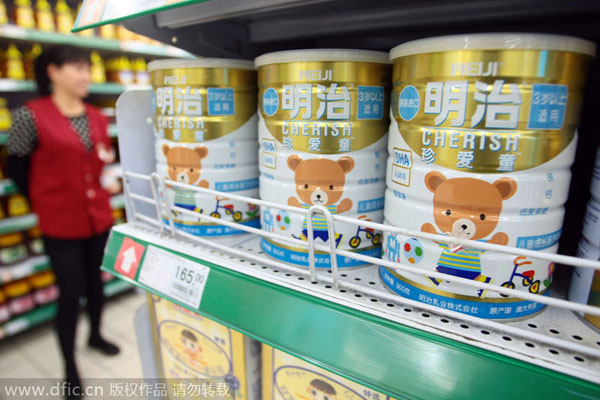Latas de leche en polvo a la venta en un supermercado de Shanghai.[Foto: IC]