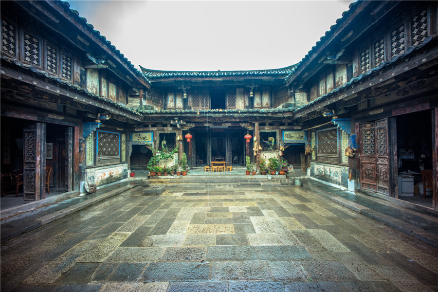 La mansión Huang es una reliquia cultural nacional. Se construyó en el 1909. La mayoría de las casas en Tuanshan están compuestos de dos plantas, con habitaciones alrededor de un patio que mira hacia el este. Los techos de tejas negras contrastan con los muros blancos. [Foto: Jiamu Wan]