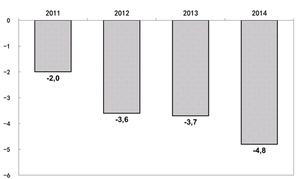 1. Ejecución de los principales índices del plan de desarrollo económico y social de 2014