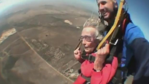 Una abuela celebra 100 a?os nadando con tiburones y saltando en paracaídas |