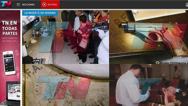Algunas fotografías muestran una gran cantidad de gente durante el operativo realizado en el lugar donde vivía Nisman, incluidos peritos, la fiscal Viviana Fein, encargada de la investigación, y el secretario de Seguridad argentino, Sergio Berni. Diarios sin recoger, la habitación del fiscal, la puerta semi-abierta del ba?o y manchas de sangre en el lavabo y en el suelo también aparecen en las fotografías difundidas hoy por los canales del país.