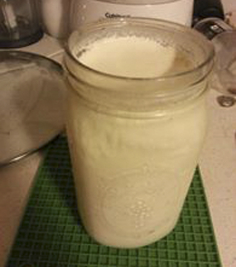 La jarra estilo Mason de 800 mililitros que Cecilia Westbrook llenó con su yogur vaginal.