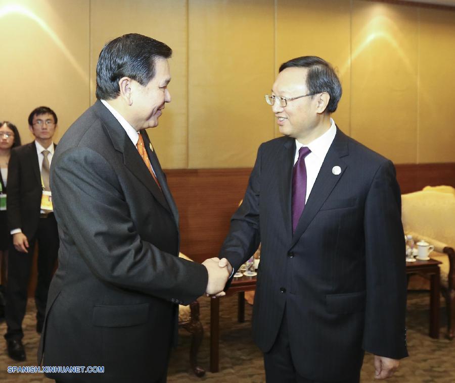 Durante su reunión con Tanasak Patimapragorn, viceprimer ministro de Tailandia, Yang pidió impulsar la cooperación en las áreas de trenes y agricultura entre China y Tailandia.