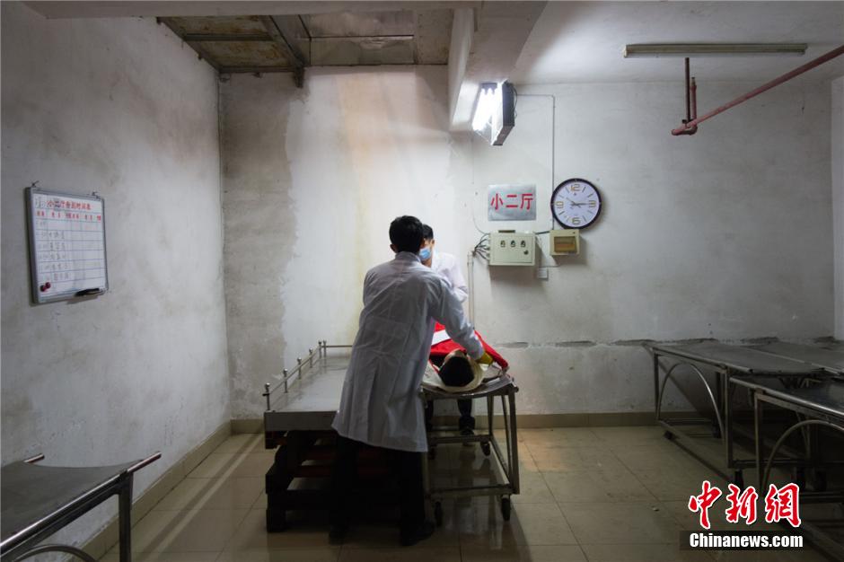 Dos artistas del maquillaje embellecen a un difunto. (Foto: Huang Weiming)