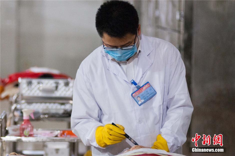 Un artista del maquillaje embellece a un difunto. (Foto: Huang Weiming)