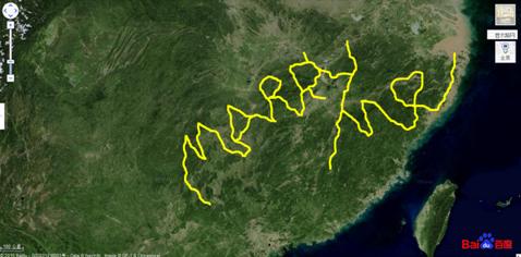 Zhang utilizó un dispositivo GPS para crear las palabras "Marry Me" con su recorrido por China. [Foto/Baidu Map]
